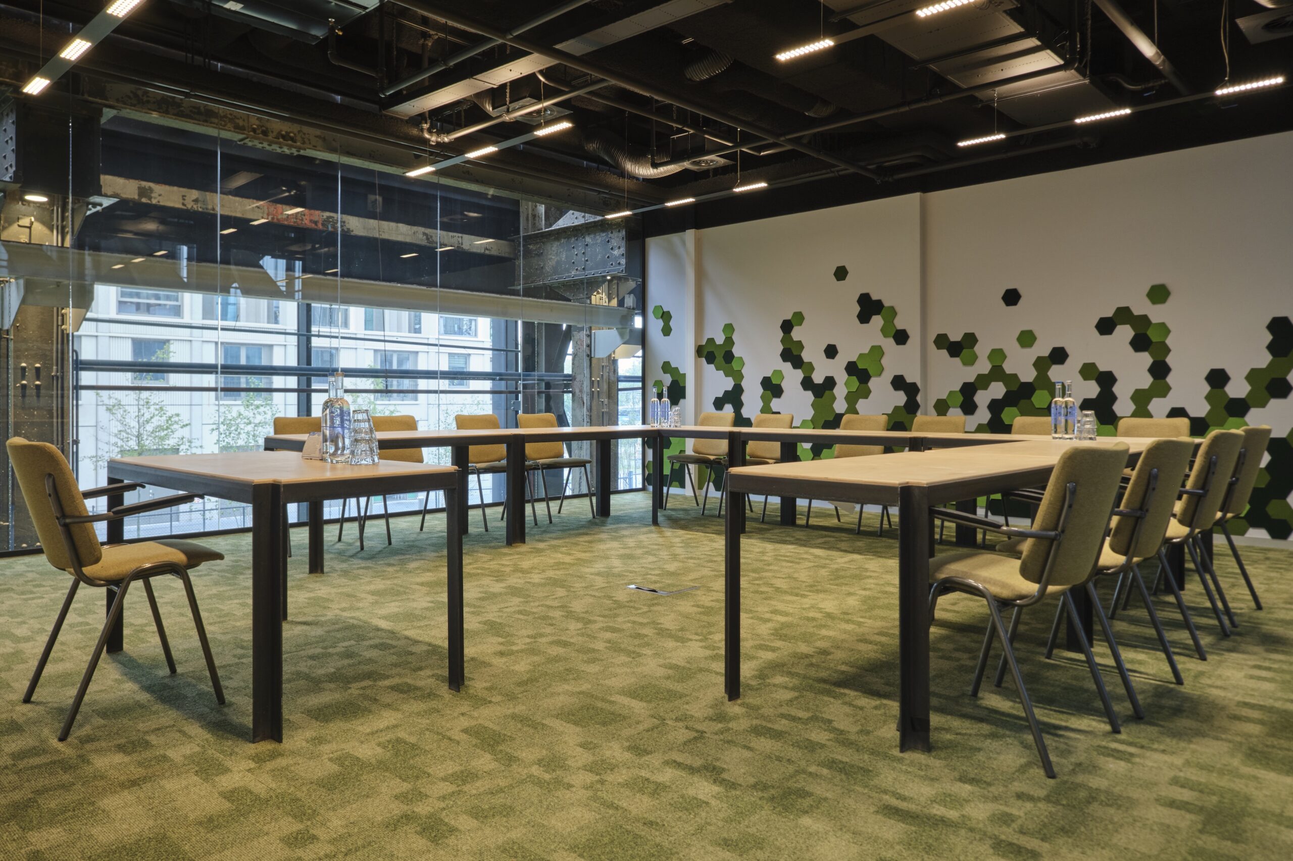 Een ruimte met een knipoog naar het Tilburgse textielverleden. Zaal Textiel bij LocHal First Floor in Tilburg heeft een industrieel karakter met kleurrijke viltelementen. De comfortabele stoelen en uitstekende akoestiek maken het de ideale plek voor trainingen of vergaderingen.