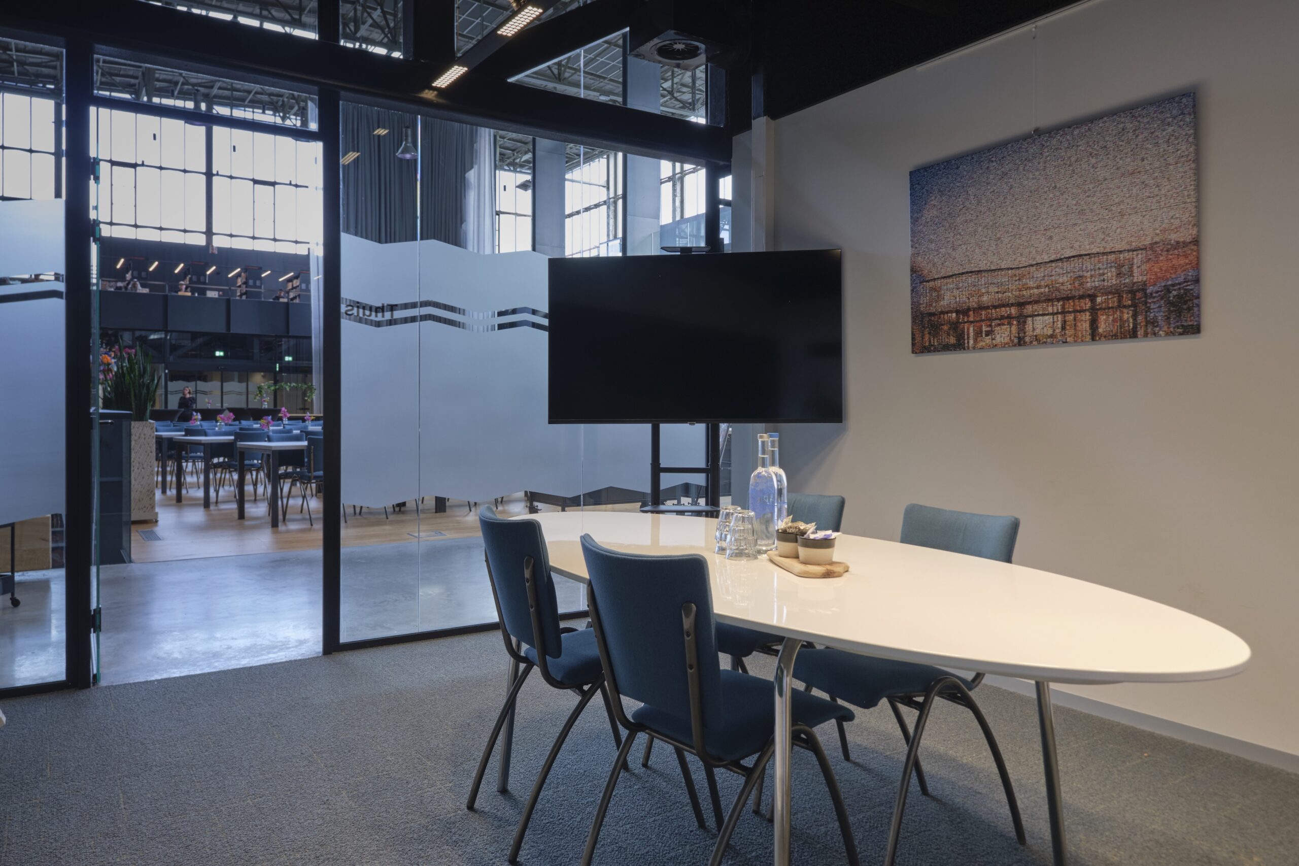 Een intieme ruimte voor persoonlijke gesprekken. Zaal Thuis bij LocHal First Floor in Tilburg is een rustige plek voor coaching sessies, sollicitatiegesprekken of kleine meetings. De warme inrichting en gedeeltelijke verduistering zorgen voor privacy zonder afgesloten te voelen.